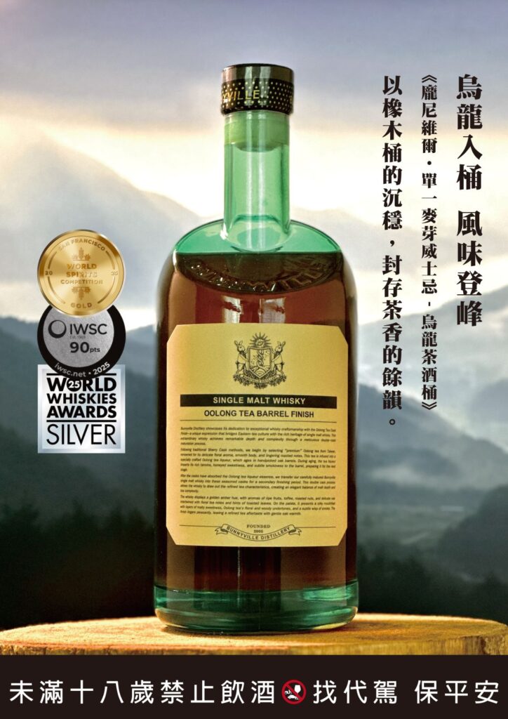 龐尼維爾的單一麥芽威士忌烏龍茶酒桶(Bunnyville Single Malt Whisky – Oolong Tea Barrel Finish)這款酒將台灣經典烏龍茶引入熟成過程,讓茶香與酒體在桶中交融。